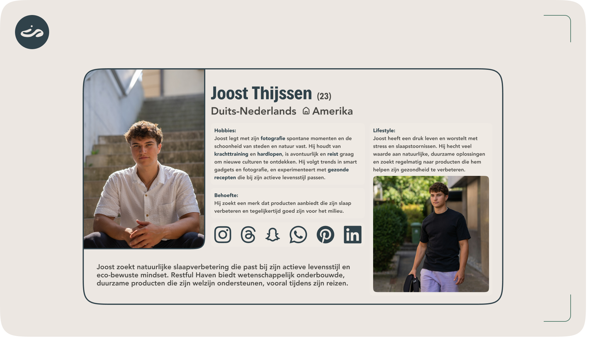 Restful Haven’s brand concept merges sleep wellness with sustainability. The aim was to develop products that enhance sleep quality while staying true to environmental values. Through a calm and comforting brand voice, Restful Haven speaks to a conscious audience that prioritizes health and sustainability in their daily lives.